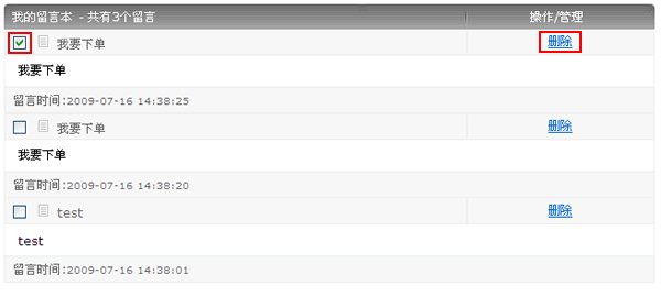 批量删除——勾选多个留言,点击上面的“选中删除”可以进行批量删除。