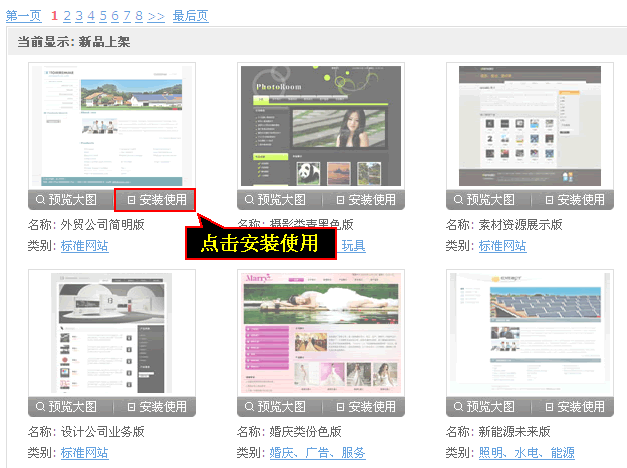 第一次用建站宝盒,填写完基本资料后可直接安装模板